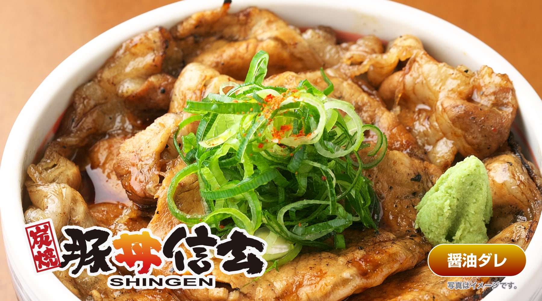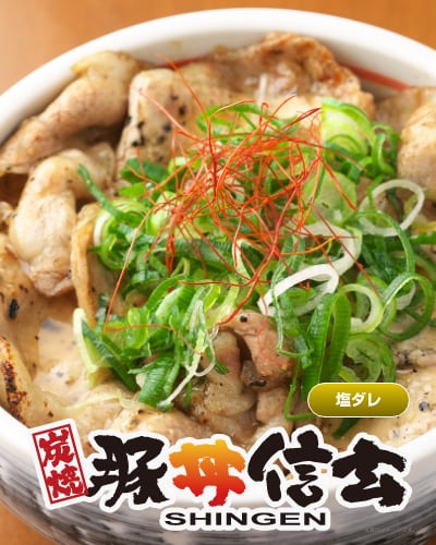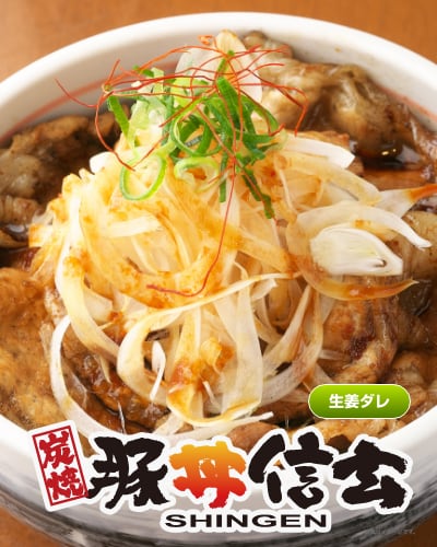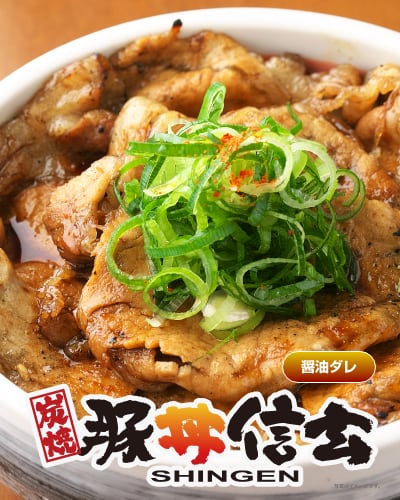 信玄の特製タレを絡めた炭火焼の豚肉と 熱々ご飯の相性が抜群の豚丼をご自宅で。 お肉をがっつり食べたい晩ご飯に! ビールと一緒に!スタミナ抜群のお弁当に!